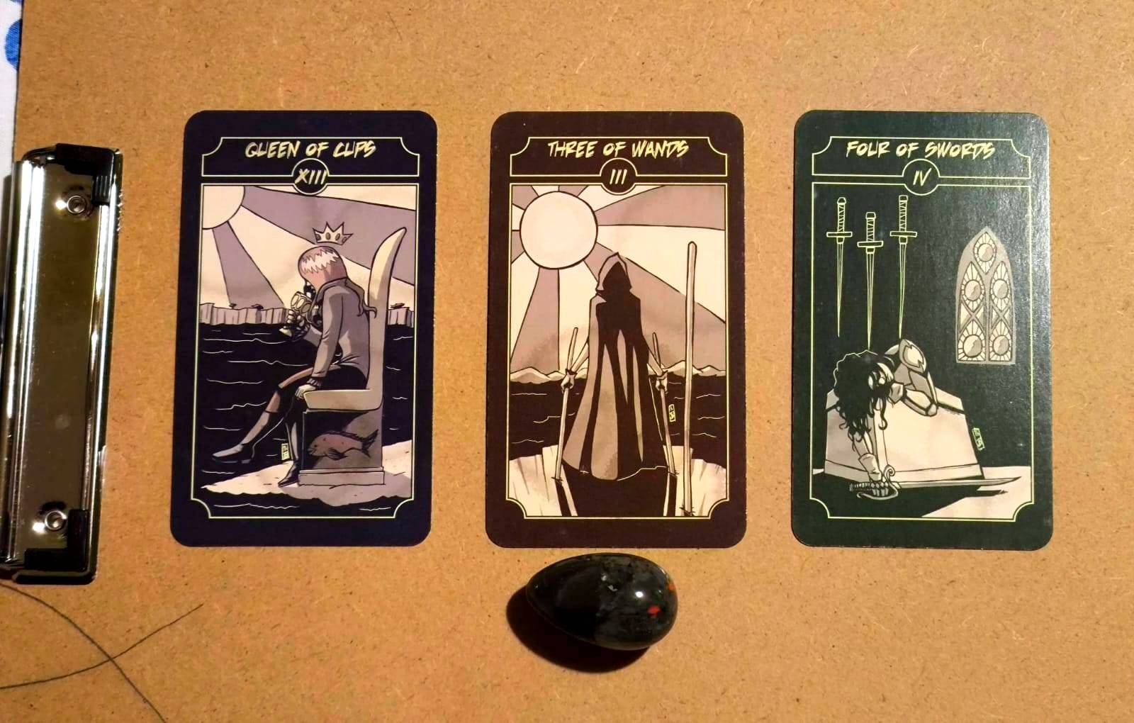 El mes pasado os hablé de mi pequeña obsesión con Moon Knight, y un ávido lector me ha regalado esta maravilla: el Tarot de Nefertari (gracias, papá, me encanta ^_^). Las cartas tienen un fondo dorado muy brillante con texturas, y sigue una estructura bastante parecida al RWS, con los arcanos menores ilustrados (las ilustraciones son una pasada). Veamos qué nos cuentan.